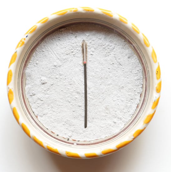 灰がフカフカしてお線香が沈む場合は、トントンとやさしく器に衝撃を与えると灰が固まります。